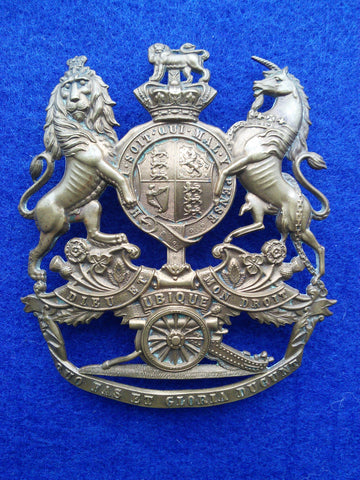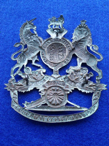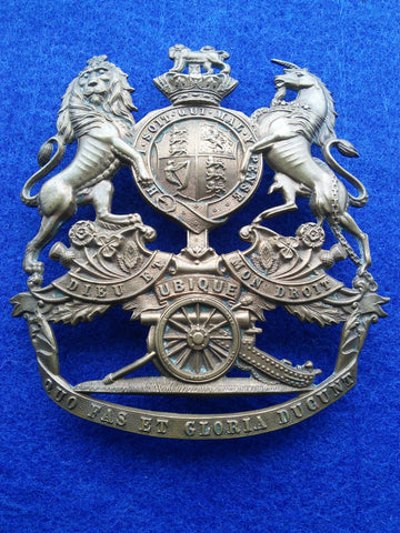 A beautiful Queen Victoria helmet plate badge issued to the Royal Field Artillery, other ranks, for the blue cloth helmet, circa until 1901. In excellent condition.