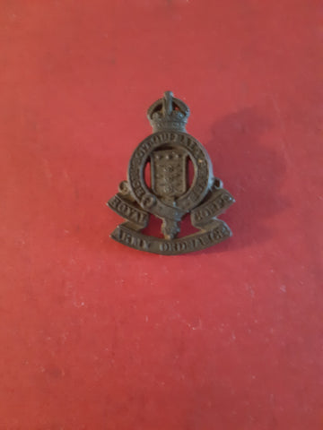 Nice original cap badge issued to the Royal Army Ordnance Corps. They made it in plastic between 1942 and 1945. The fixings on the reverse are complete, they are often broken.