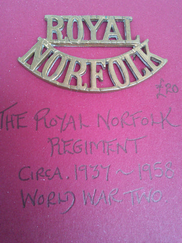 Lovely original metal shoulder title issued to the Royal Norfolk Regiment, circa 1937 to 1958.